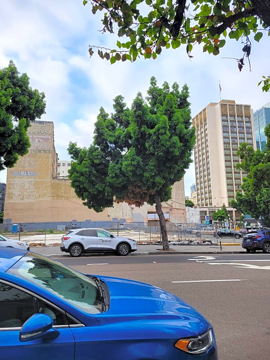 401 B StreetThese trees on B street have a history of limbs frequently falling—sometimes on cars. The bottom of this tree seems to be dying and is looking like it will fall off. It should probably be addressed before that happens.
